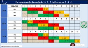 Na aritmética, que é o ramo básico da matemática, existe um axioma para a operação fundamental de SOMA, refletido na propriedade comutativa, que afirma “A ordem dos fatores não altera do resultado da função ADIÇÃO, ou seja, a + b = b +a. Mas em aplicações de #sequenciamento da produção e #programação da produção esta regra não é aplicada. A figura atachada, para três ordens de produção (verde – vermelha – laranjada), com três operações (10 – 20 – 30), em três máquinas (M1 – M2 – M3), num processo flow shop (sempre da M1 para M2 e depois para M3) mostra que em termos de duração da programação, a alternativa 2 é a melhor. A ordem com que as tarefas e operações – Jobs – afetam diretamente o resultado final, em diferentes dimensões – duração da programação (#makespan), ocupação dos recursos no tempo, data de entrega do pedido, inventário em processo, tempo e set-up, entre outros. Essa ordem é determinada pelos #heurísticos de sequenciamento e programação, tornando disponível cenários distintos para alocação de tarefas (operações) das ordens de produção abertas nos recursos produtivos no tempo. Tal ação trará resultados diferentes. Desde modo, existirão resultados distintos para diferentes regras de programação: maximização da pontualidade, minimização do setup, diminuição de inventário em processos, entre outros. A escolha desses cenários ocorre em função do ambiente produtivo, época do ano, características do processo produtivo, complexidade da estrutura do produto, estratégia de resposta a demanda, etc. Promover a simulação, advinda da construção de cenários, e posterior comparação desses cenários é primordial nos dias atuais. Quem tem uma alternativa só não tem escolha. Josadak Marçola